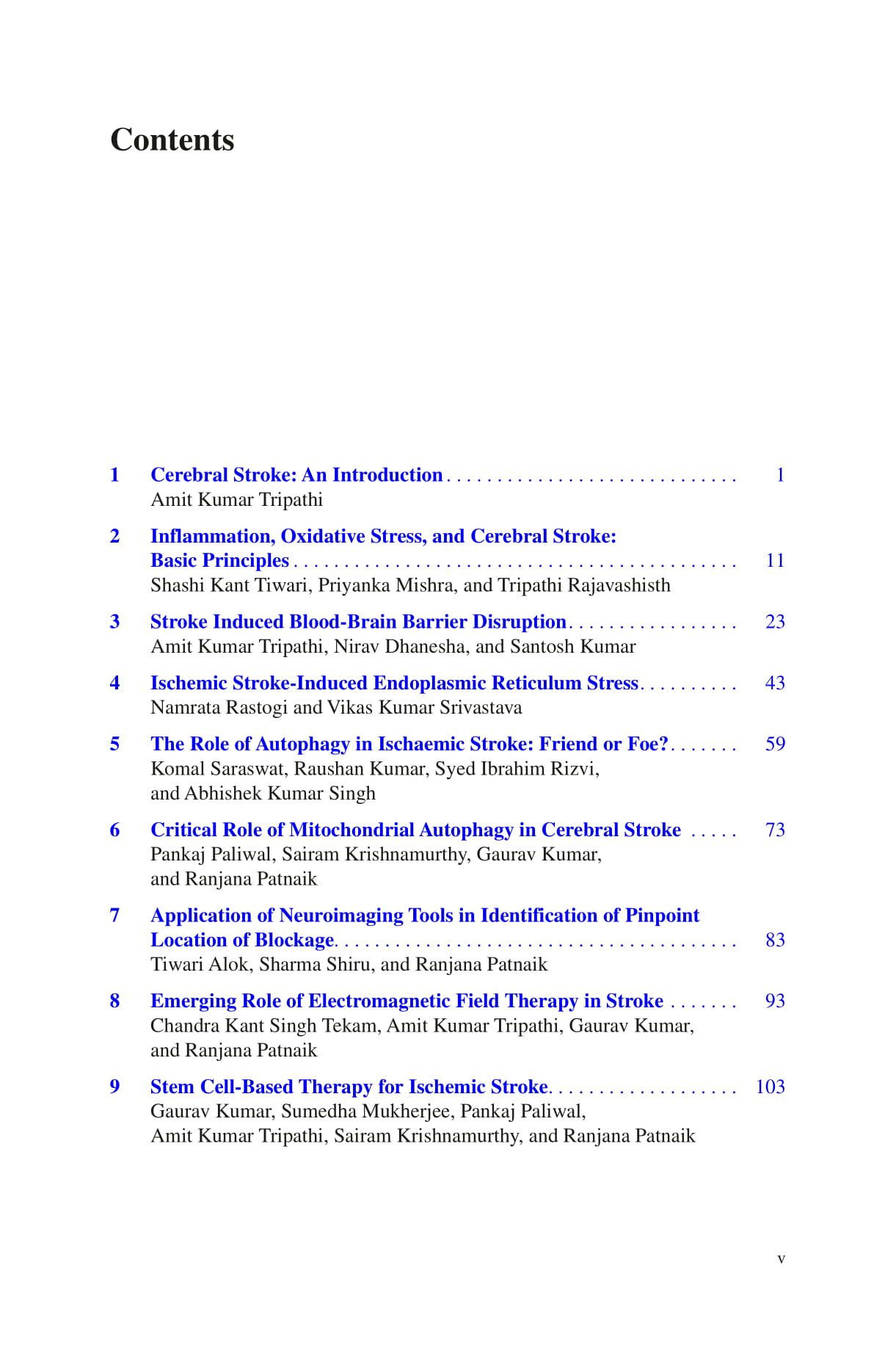 This book provides detailed and comprehensive mechanistic insights of the various risk factors that lead to the ischemic stroke and the novel therapeutic interventions against it. The first section discusses the different ischemic cerebral stroke-induced inflammatory pathways and dysfunctionality of blood-brain barrier. The later sections of the book deals with the role of endoplasmic reticulum stress and mitophagy in cerebral stroke and introduces the different neuroimaging techniques such as Computed tomography (CT), Magnetic resonance imaging (MRI), Positron emission tomography (PET) and Single-Photon emission computed tomography (SPECT) that are used to identify the arterial blockages. The final section comprises of chapters that focus on various neuroprotective strategies and emerging therapeutic interventions for combating stroke pathophysiology. The chapters cover the role of stem cell therapy, the therapeutic effect of low-frequency electromagnetic radiations (LF-EMR), and implications of non-coding RNAs such as micro-RNAs as the biomarkers for diagnosis, prognosis, and therapy in ischemic stroke.