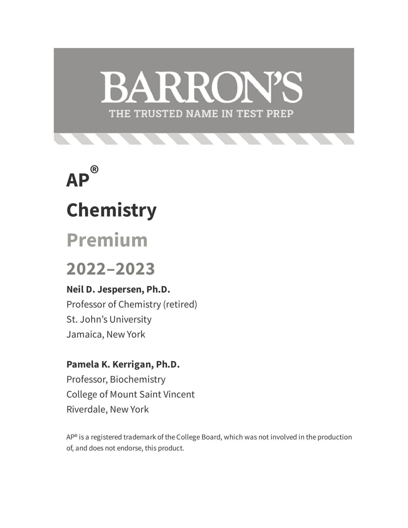 Barron’s AP Chemistry Premium: 2022-2023 includes in-depth content review and online practice. It’s the only book you’ll need to be prepared for exam day.