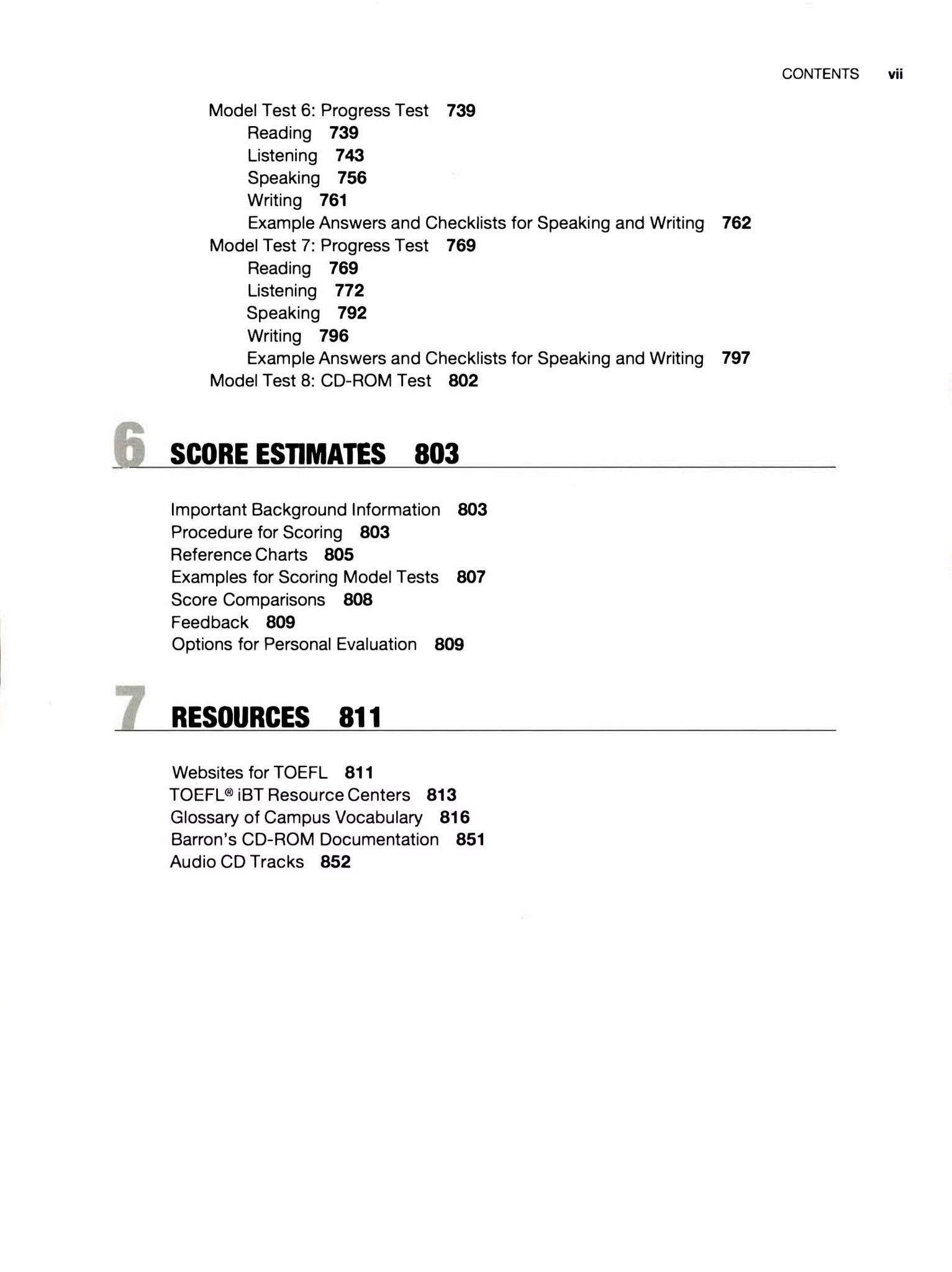 - Seven model TOEFL iBT tests with answer explanations and sample writing and speaking responses