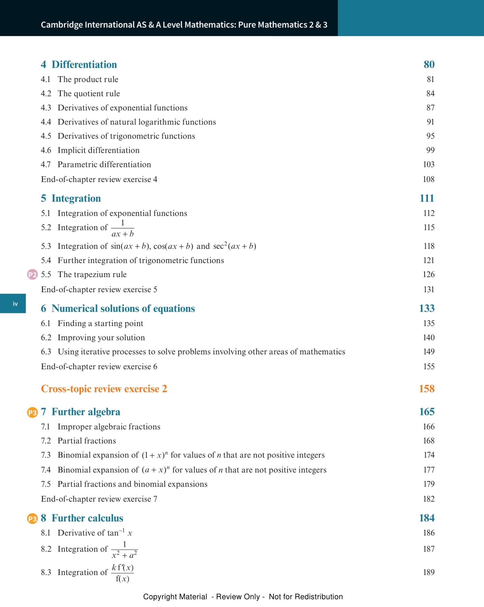 This series has been developed specifically for the Cambridge International AS & A Level Mathematics (9709) syllabus to be examined from 2020. The coursebook provides clear explanations and practice exercises to help students master maths skills. This edition has a subscription to the Pure Mathematics 2 & 3 Cambridge Online Mathematics component. With all of the materials found within the coursebook, including answers, Cambridge Online Mathematics offers students the facility to demonstrate their working, as well as opportunities for self-assessment, and allows teachers to set classroom and homework exercises to individual students or classes, with the ability to track progress. The online resource requires internet access. For more information on how to use Cambridge Online Mathematics, please see inside the front cover.
