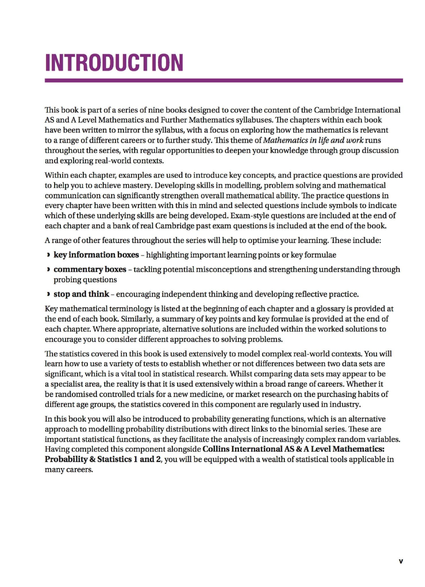 • covers the complete content of Further Probability & Statistics with clear references to what you will learn at the start of each chapter, and coverage that clearly and directly matches the Cambridge syllabus