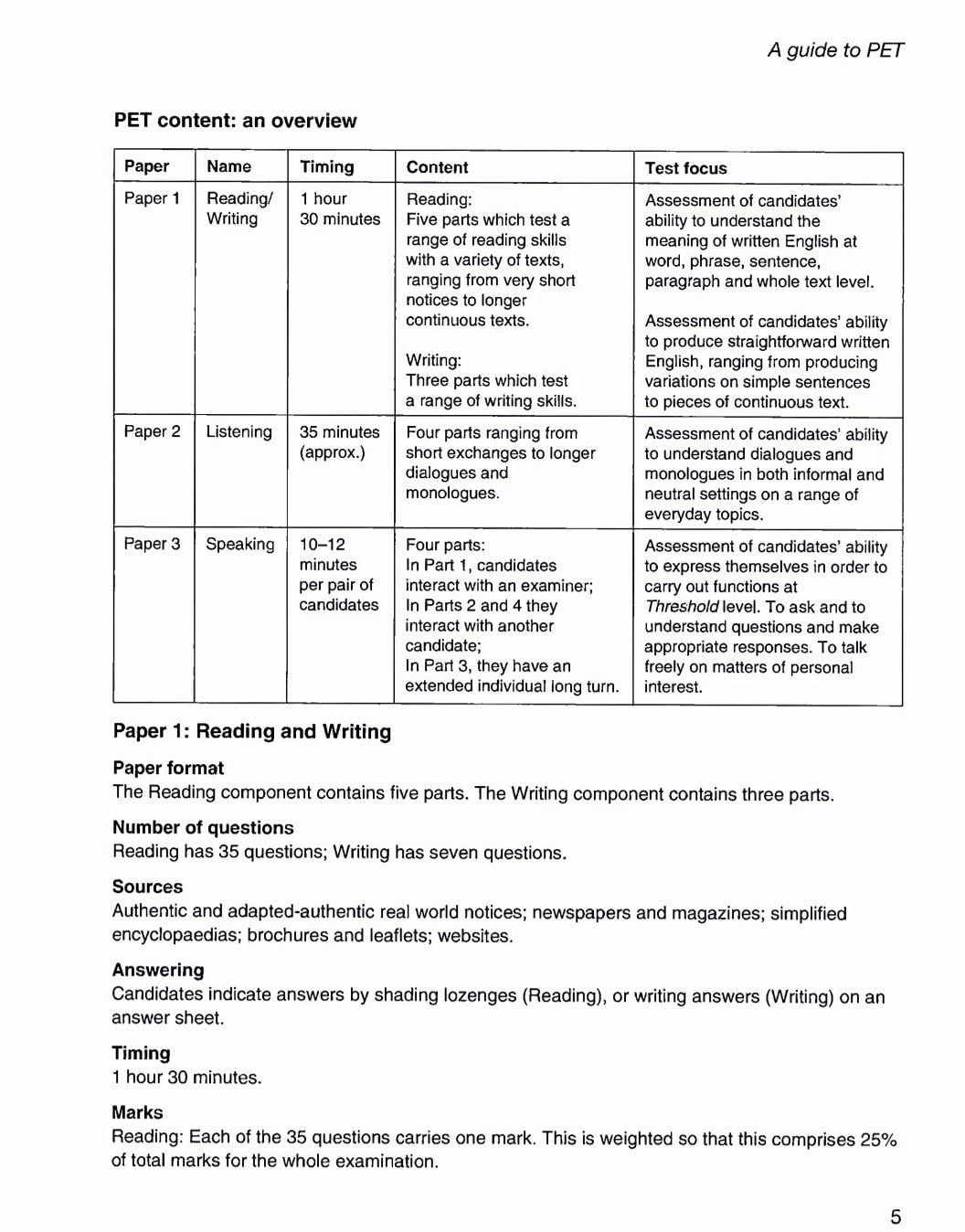 Cambridge Preliminary English Test 5