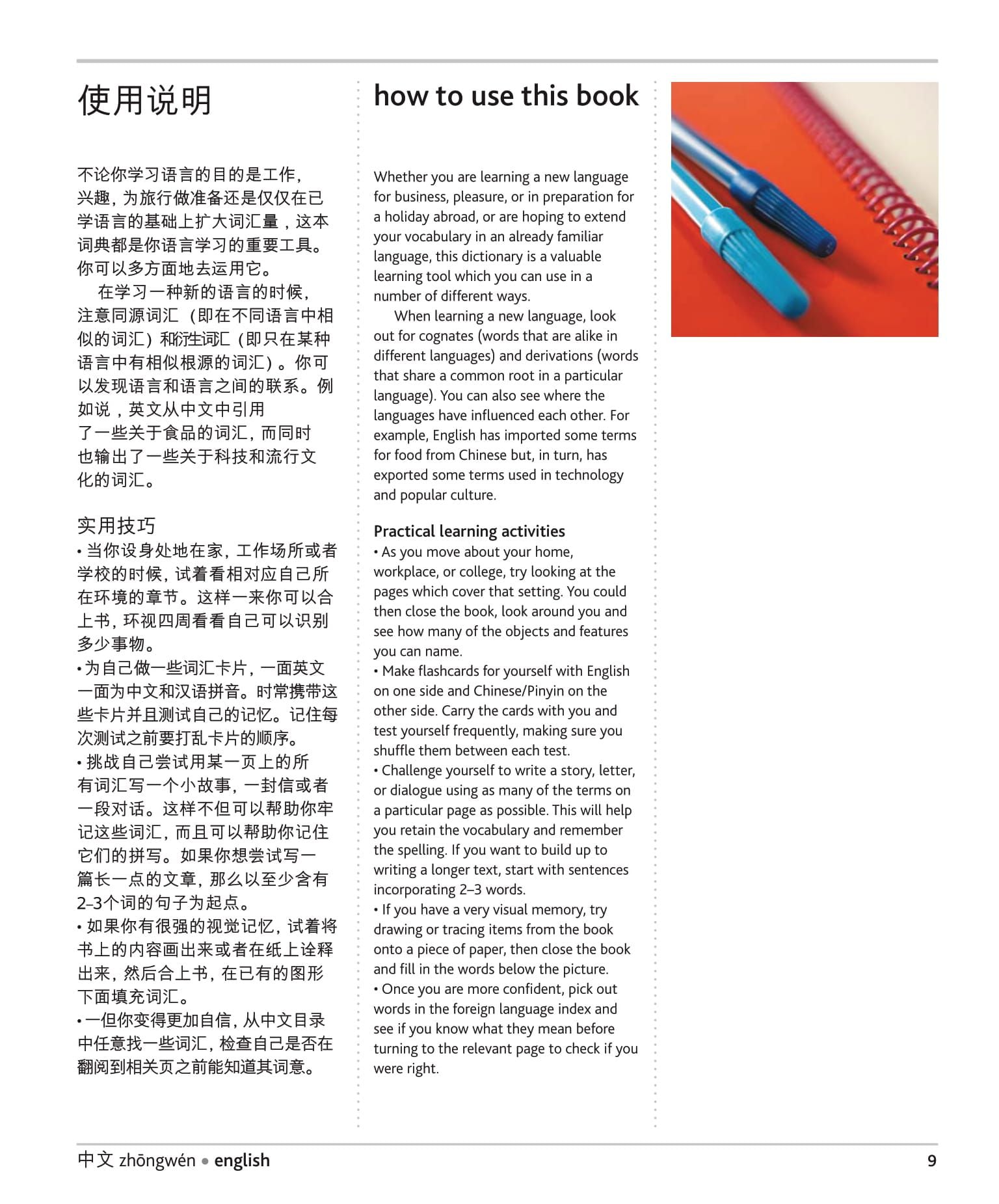 Look and learn to recall a wealth of everyday vocabulary in Chinese with this intuitive easy-to-use visual language dictionary. Whether it's for business or pleasure, pick up 6,000 key Chinese words and phrases on a range of subjects: from shopping and eating out, to sport and beyond quickly and easily. Find every word you need to know fast using the clearly labelled colour illustrated scenes from everyday life. Plus, find helpful features on key Chinese nouns, verbs and phrases to improve your understanding. Pocket-sized so you can take it wherever your travels take you.
