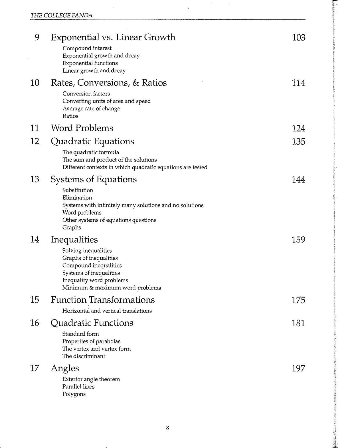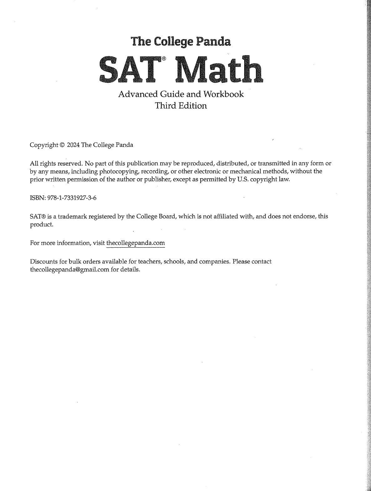 This is the most thorough SAT prep out there. For the complete table of contents, sample chapters, and more information, check out http://thecollegepanda.com/books
