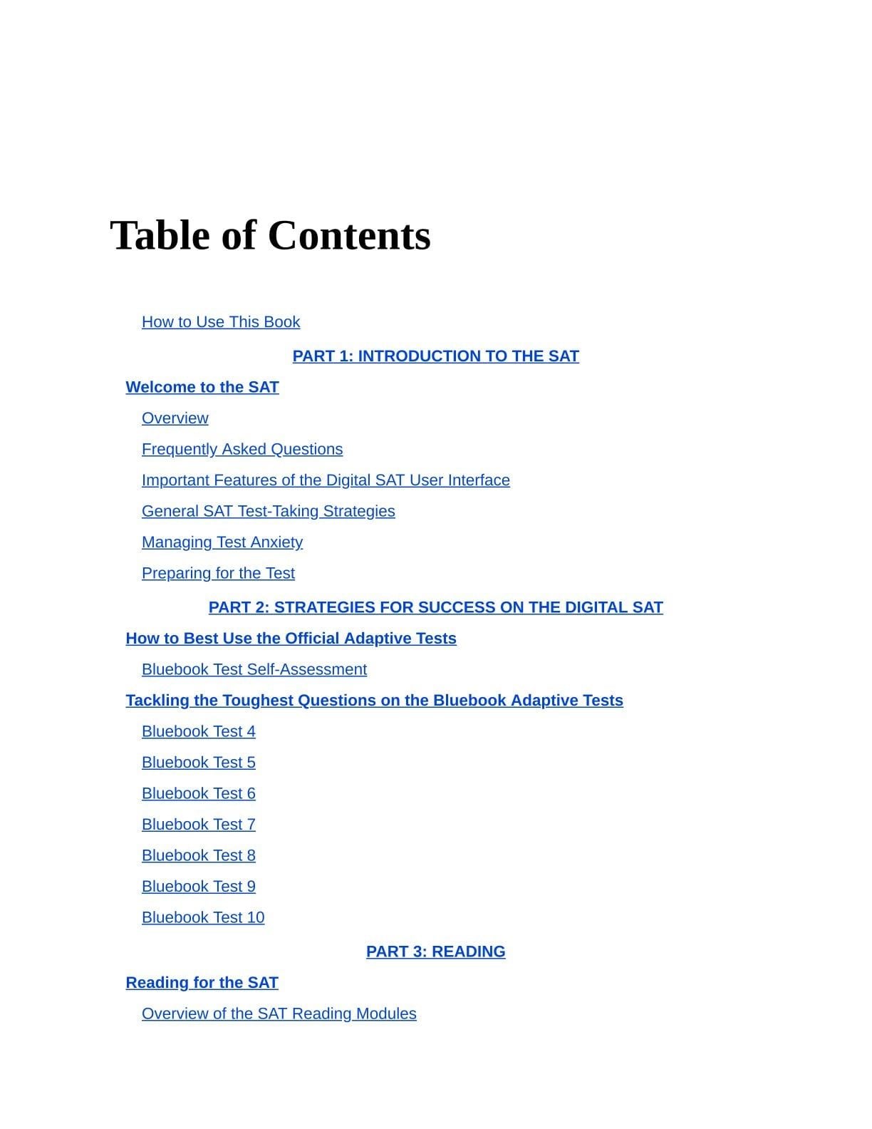 - 3 full-length SAT practice tests, including a print-based adaptive-style exam