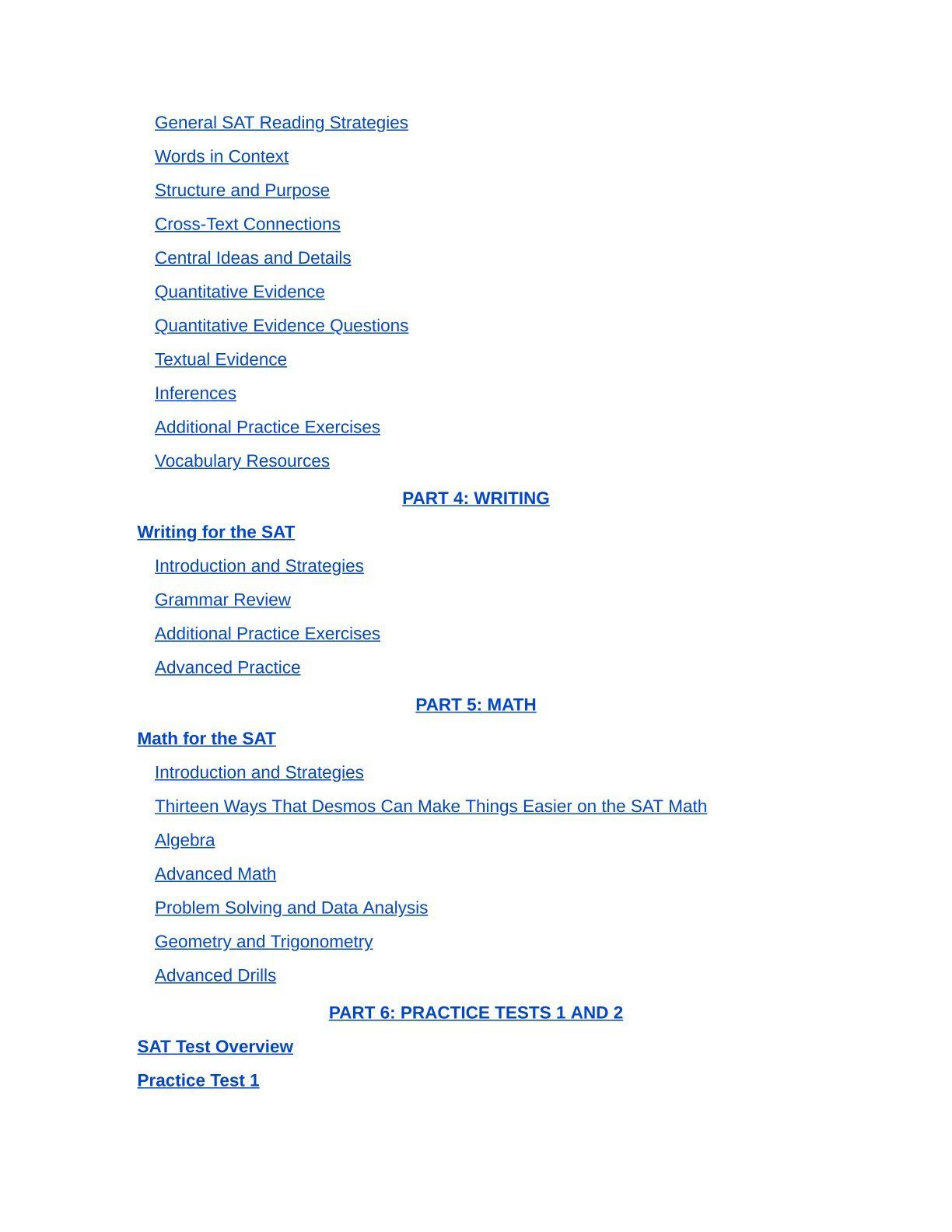 - Math: Algebra, Problem Solving & Data Analysis, Advanced Math, Geometry &Trigonometry