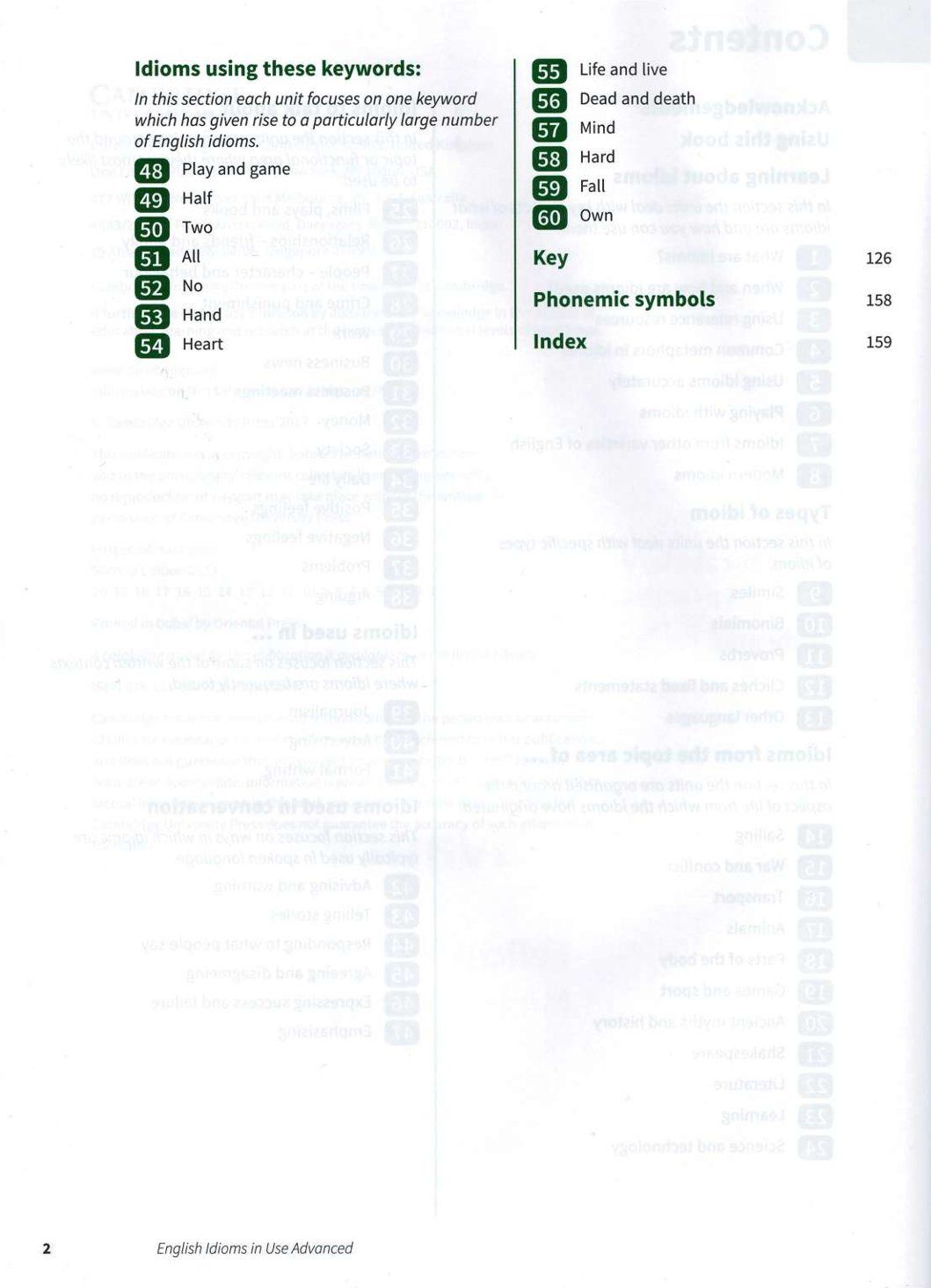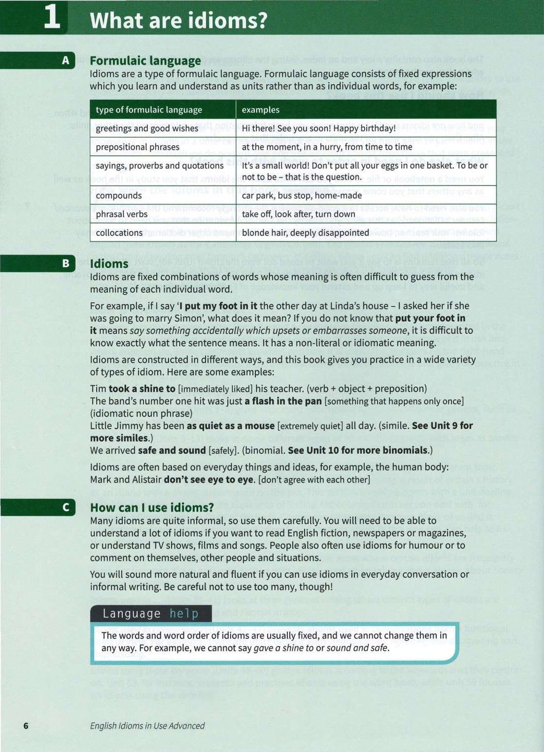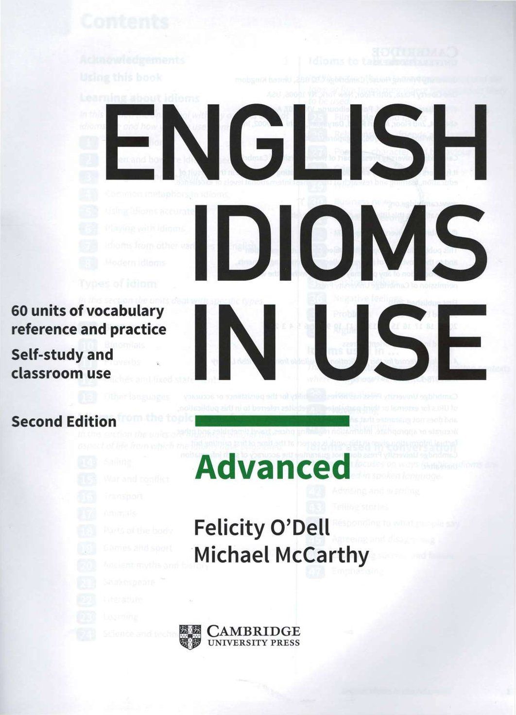 mprove your understanding of idioms in English. Explanations and practice of English idioms, written for advanced-level (C1 to C2) learners of English. Perfect for both self-study and classroom activities. Learn idioms in context, with lots of different topics, including 'Learning', 'Formal writing' and 'Telling stories'. Be confident about what you are learning, thanks to Cambridge research into how English is really spoken and written, and get better at studying by yourself, with study tips, follow-up tasks and an easy to use answer key.