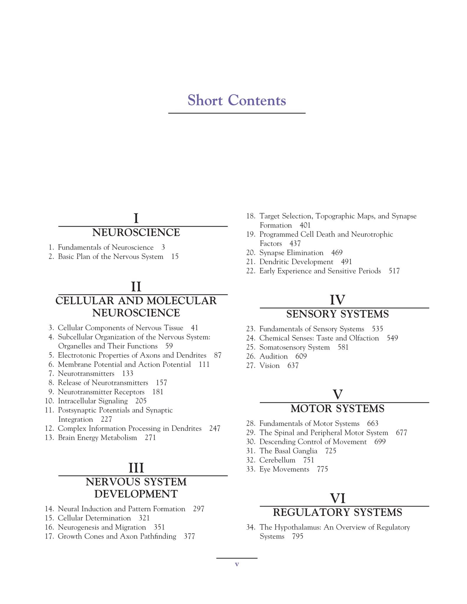 - 30% new material including new chapters on Dendritic Development and Spine Morphogenesis, Chemical Senses, Cerebellum, Eye Movements, Circadian Timing, Sleep and Dreaming, and Consciousness