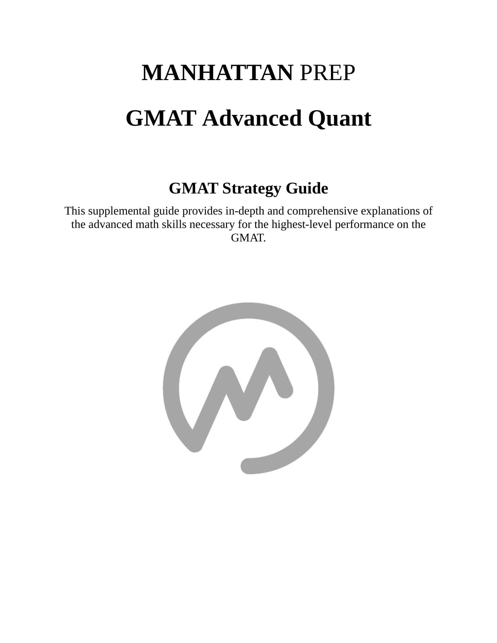 GMAT Advanced Quant is designed for students striving for 800, this book focuses on building your high-level quantitative skills by combining elite techniques for problem solving and data sufficiency with intense practice.
