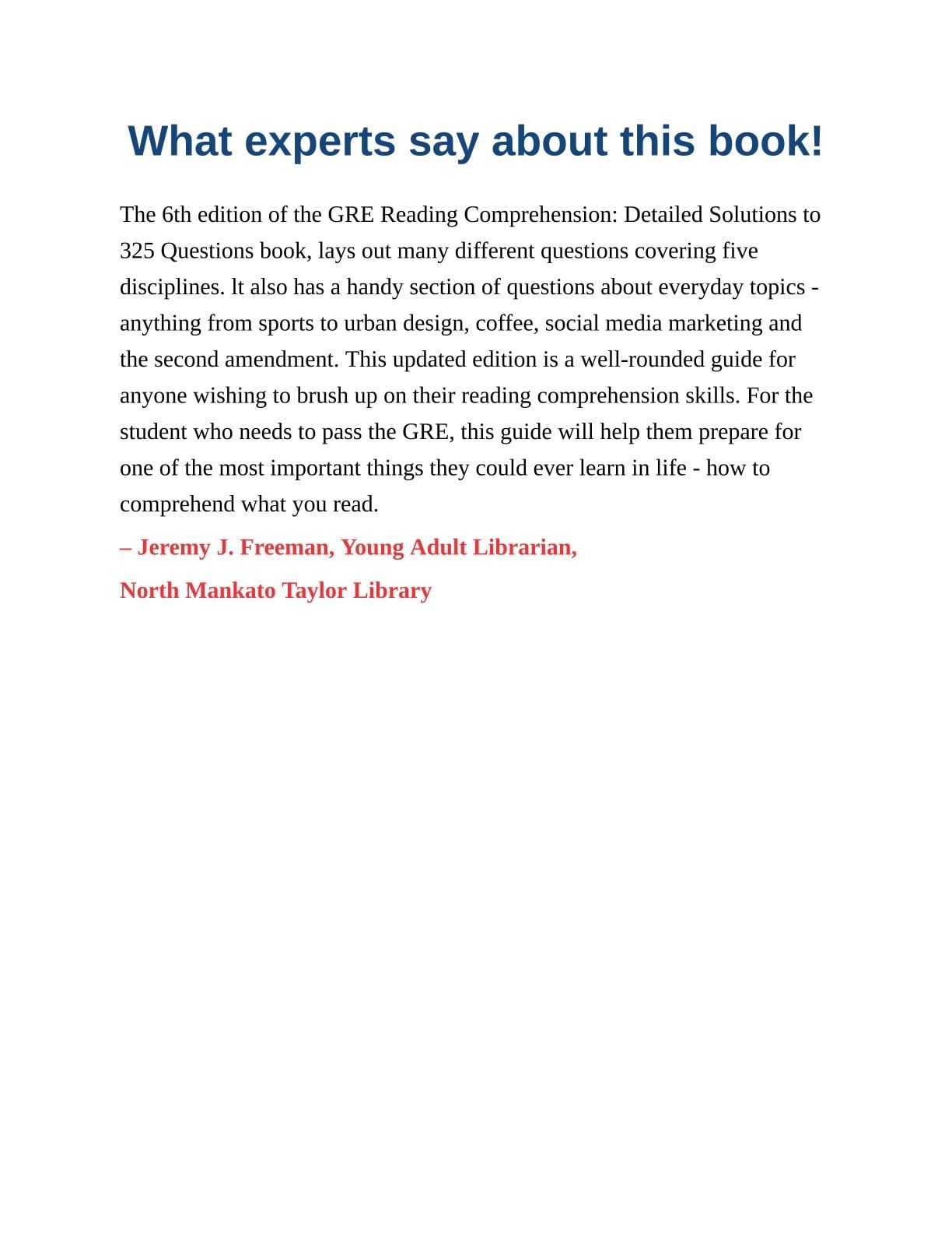 • Revised and updated content that is in-line with the new GRE guidelines.