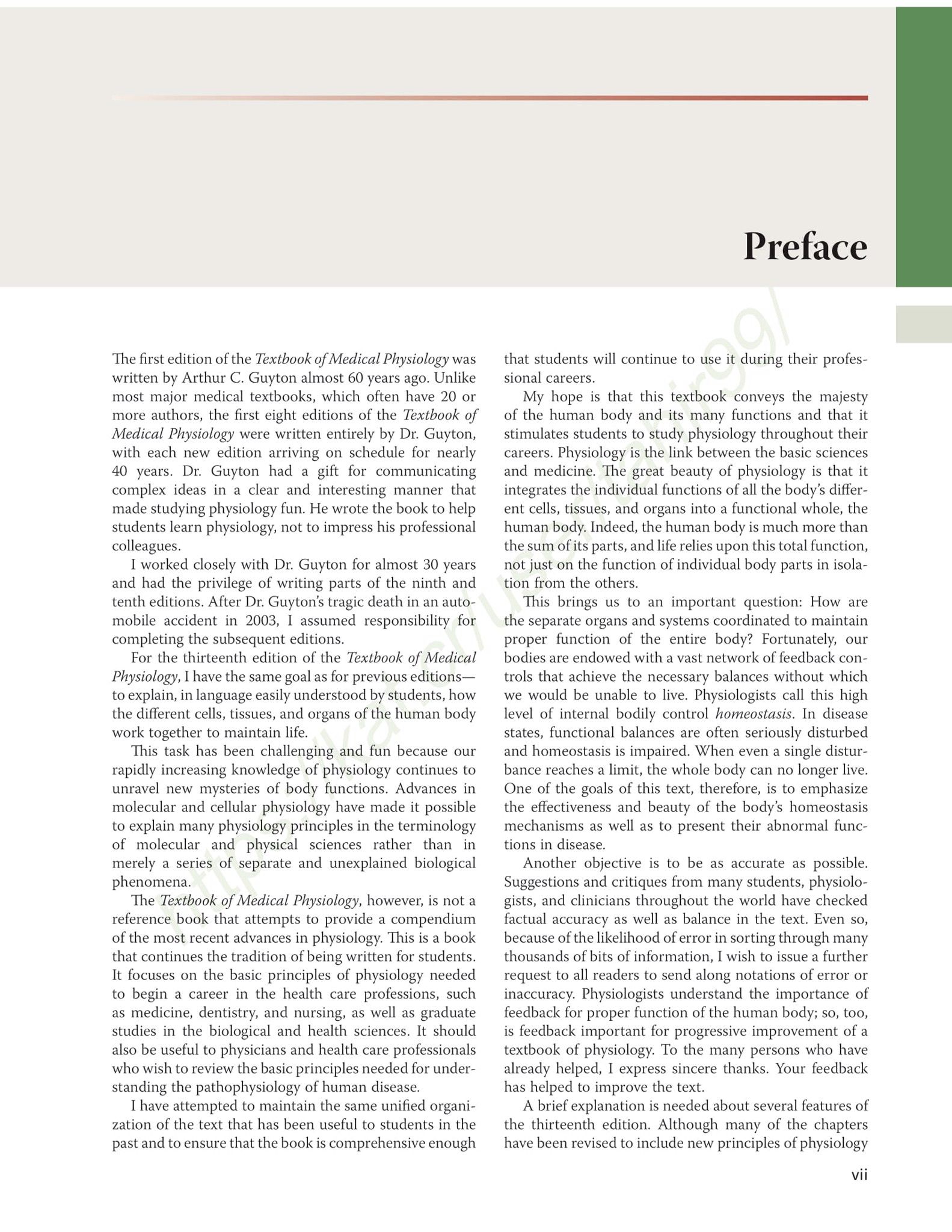 The 13th edition of Guyton and Hall Textbook of Medical Physiology continues this bestselling title's long tradition as the world’s foremost medical physiology textbook. Unlike other textbooks on this topic, this clear and comprehensive guide has a consistent, single-author voice and focuses on the content most relevant to clinical and pre-clinical students. The detailed but lucid text is complemented by didactic illustrations that summarize key concepts in physiology and pathophysiology.