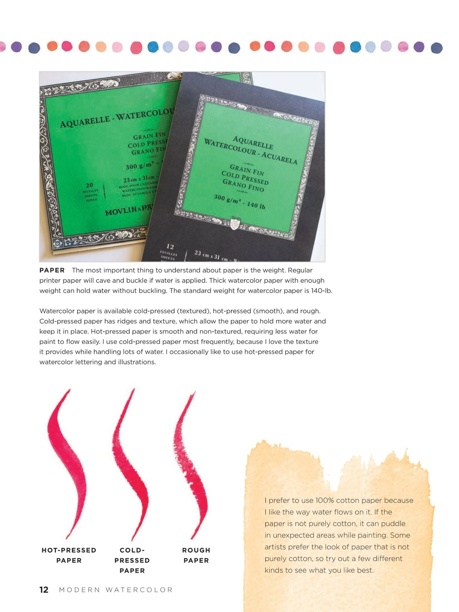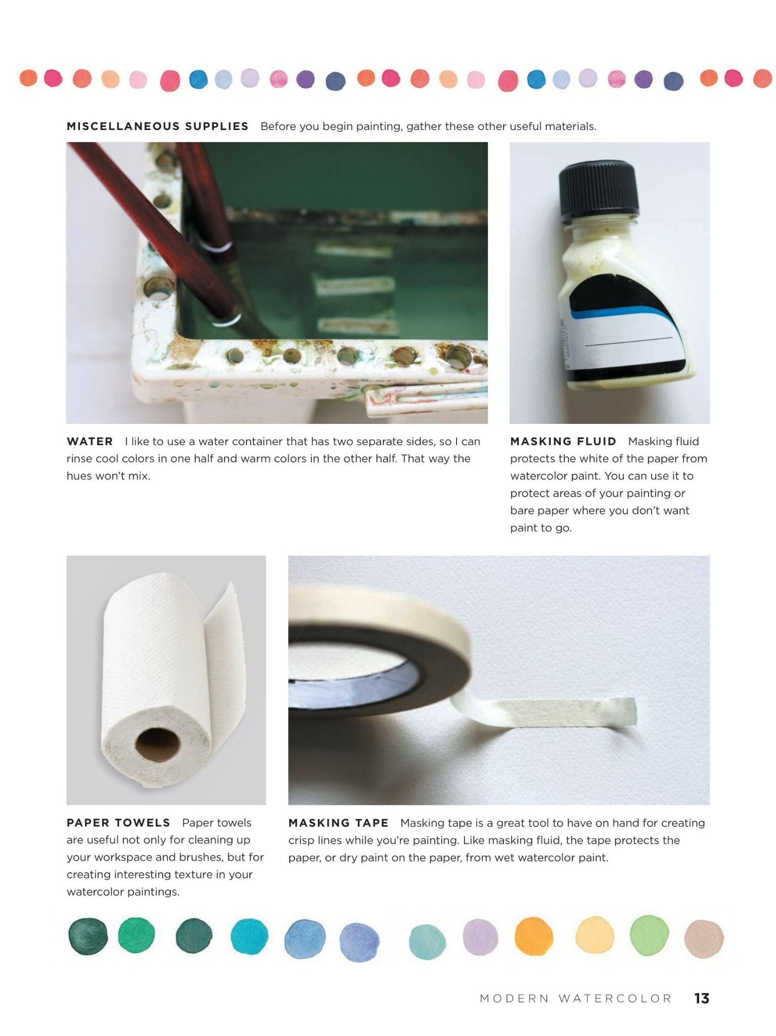 Modern Watercolor provides a colorful and fun approach to working with watercolor! Use the easy-to-follow instructions and beautiful, colorful artwork featured throughout the book to create dynamic leaves, flowers, trees, and simple geometric shapes and patterns.