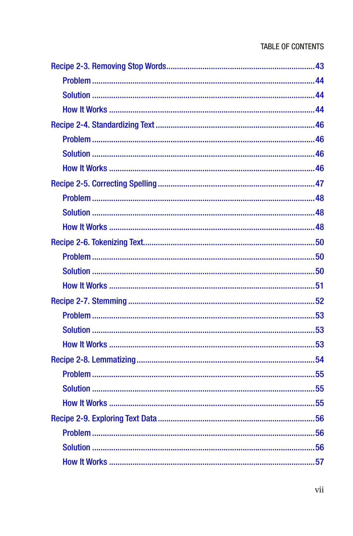 Implement natural language processing applications with Python using a problem-solution approach. This book has numerous coding exercises that will help you to quickly deploy natural language processing techniques, such as text classification, parts of speech identification, topic modeling, text summarization, text generation, entity extraction, and sentiment analysis.