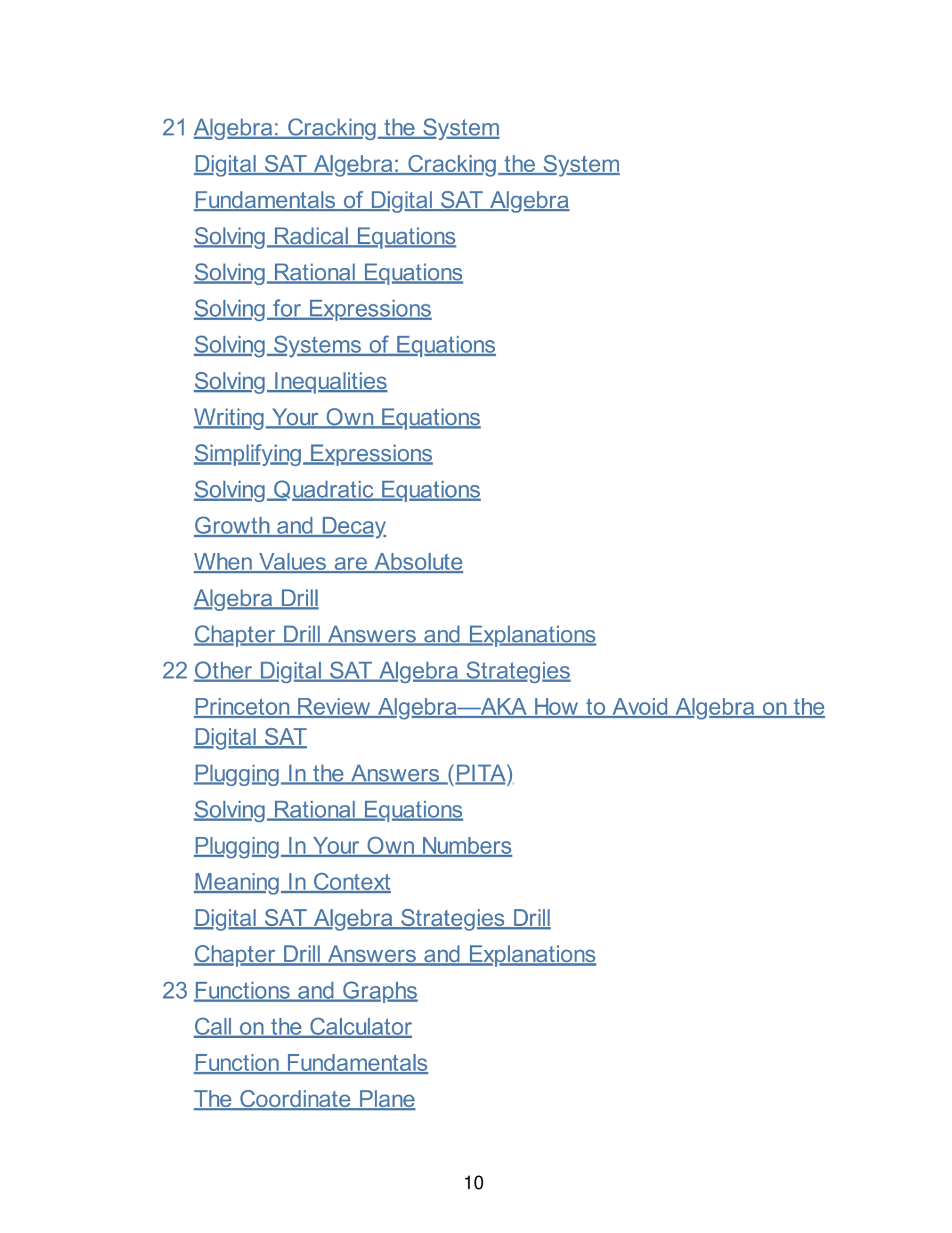 Princeton Review Digital SAT Premium Prep, 2024 (mục lục không có số trang)