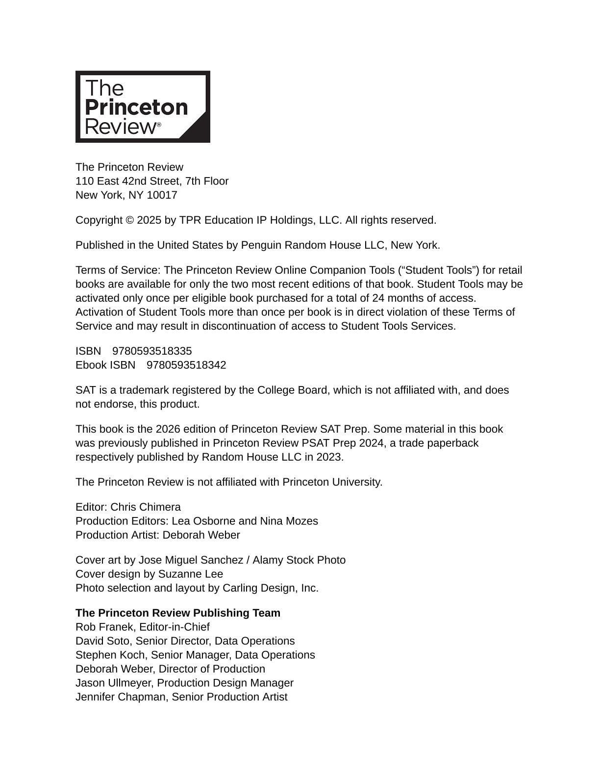 THE ALL-IN-ONE SOLUTION FOR YOUR HIGHEST POSSIBLE SCORE! The Princeton Review provides everything you need to master the exam, with traditional content review, proven SAT strategies, and 6 full-length practice tests (3 in the book and 3 realistic adaptive tests online). Plus, get instant score reports and practice with the digital test format with in our exclusive online Student Tools!