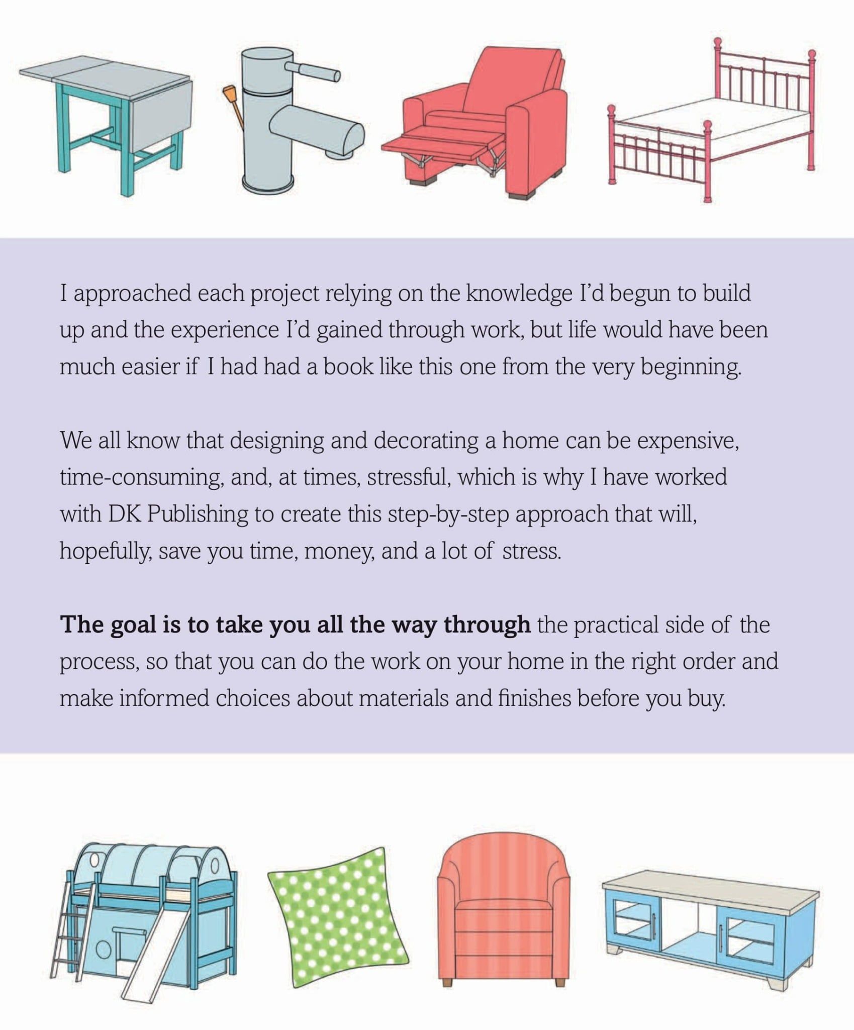 - Covers color schemes, designing layouts, and choosing flooring or lighting