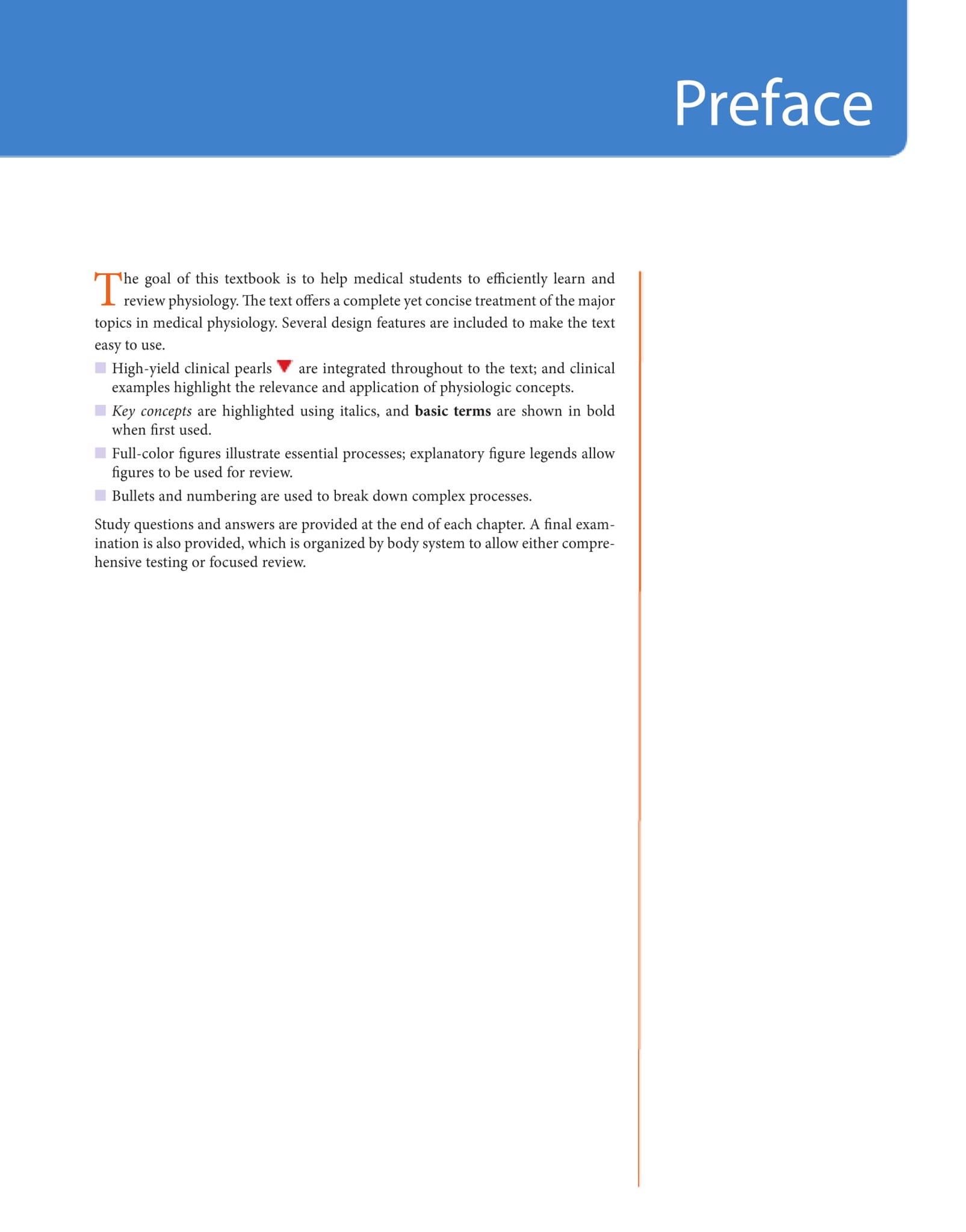 - High yield clinical pearls and clinical examples highlighting the relevance and application of physiologic concepts
