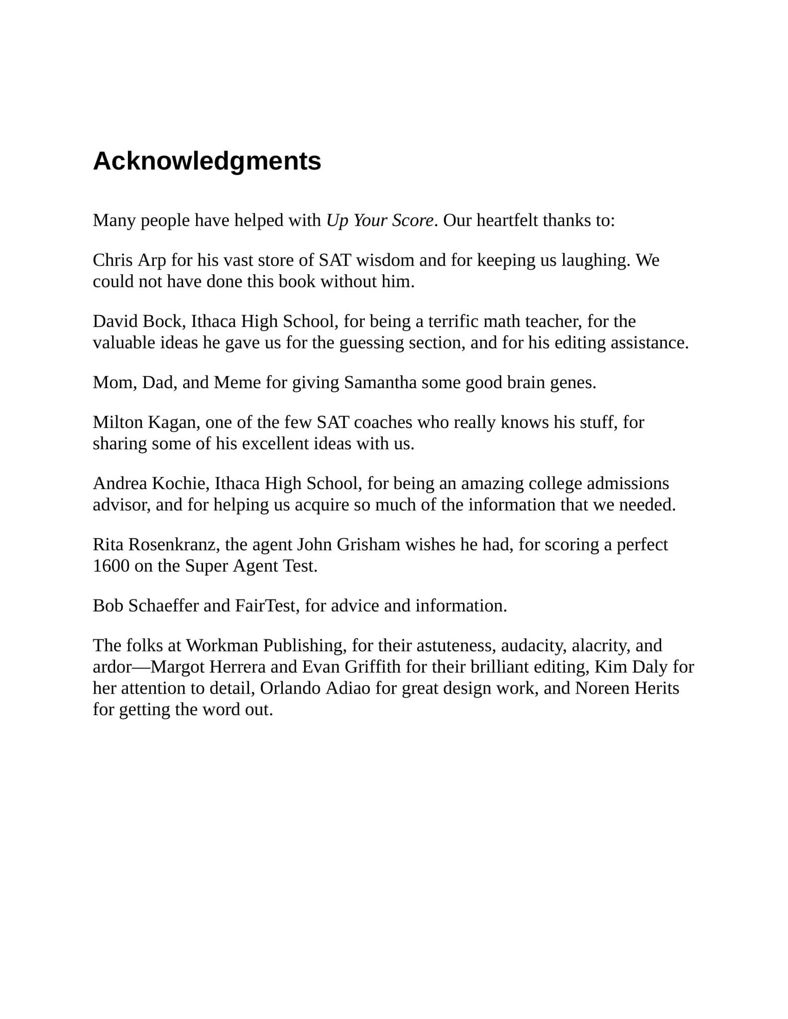 Thoroughly revised for the revamped SAT, Up Your Score: SAT is the only test-prep guide written for students by students—all of whom achieved perfect or near-perfect scores and went on to the colleges of their choice