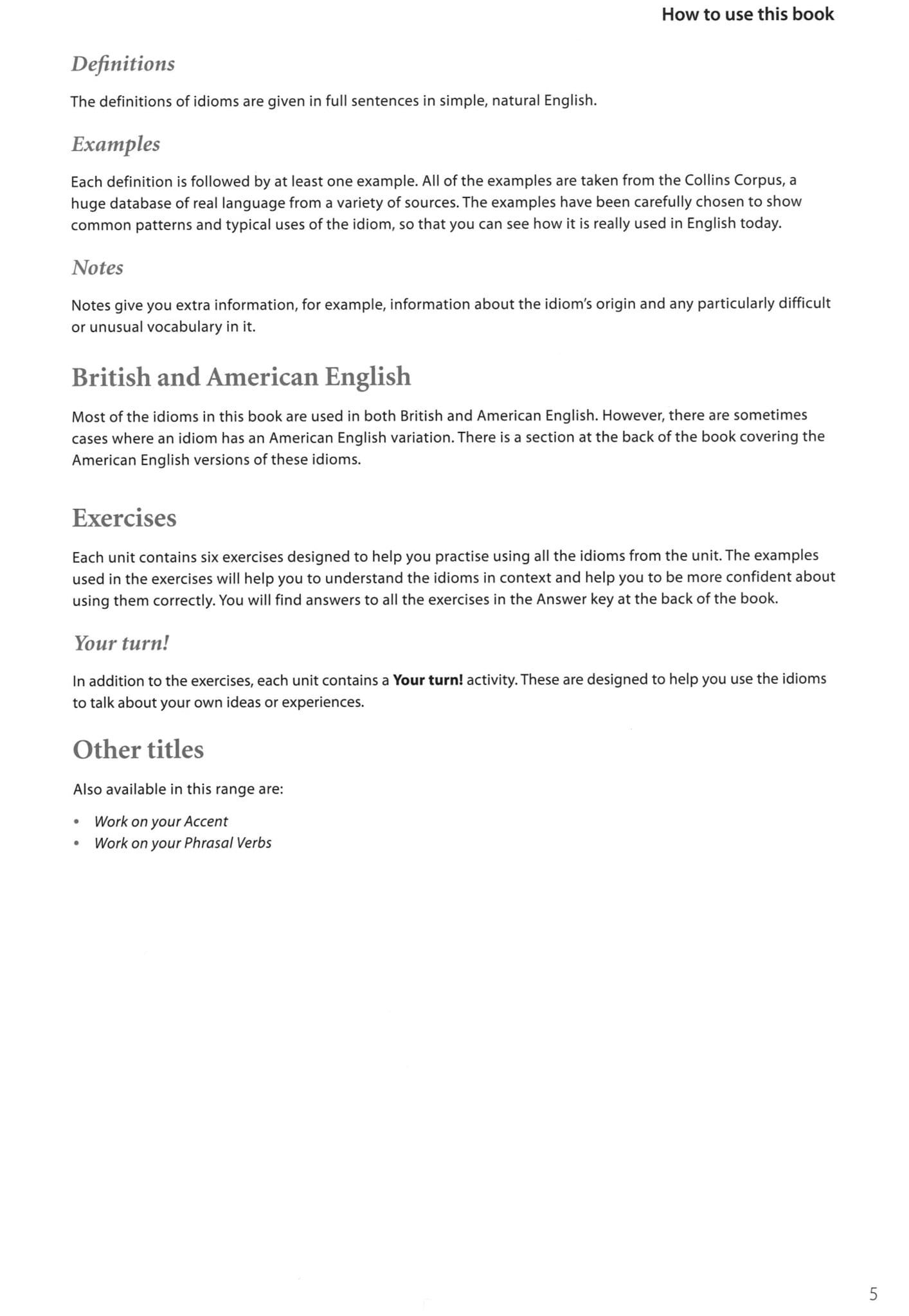 A practice book for learners who want to increase the number of idioms they know and be confident in using them. Each unit presents students with a selection of idioms and clear examples of when and how to use them.
